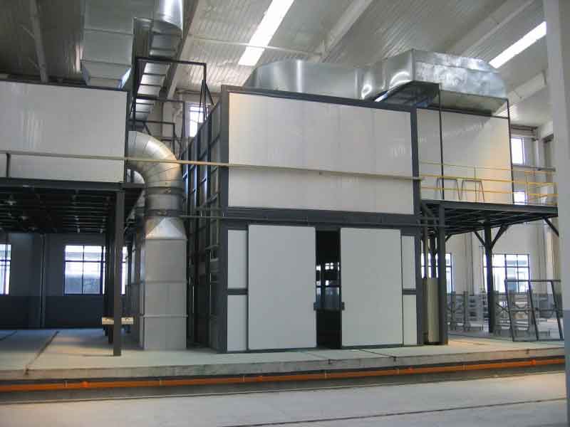 照明采用防尘照明系统,所有通往喷砂室的门均设有电气联锁装置,确保任何一扇门打开时喷砂系统停止工作。门外的警示灯显示喷砂正在进行中。